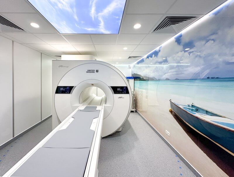- Problemy z leżeniem w jednej pozycji – rezonans wymaga pozostania w bezruchu, co może być trudne dla osób z bólem, problemami neurologicznymi lub dzieci, które mogą wymagać znieczulenia.