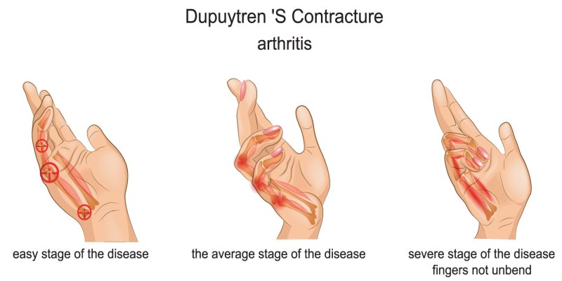 - In advanced stages, the disease significantly limits the function of the hand and makes it difficult, for example, to write, hold objects, put on gloves, put a hand in a pocket or say hello.