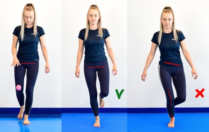 Correct body position - lower limb held in alignment, pelvis aligned horizontally.
