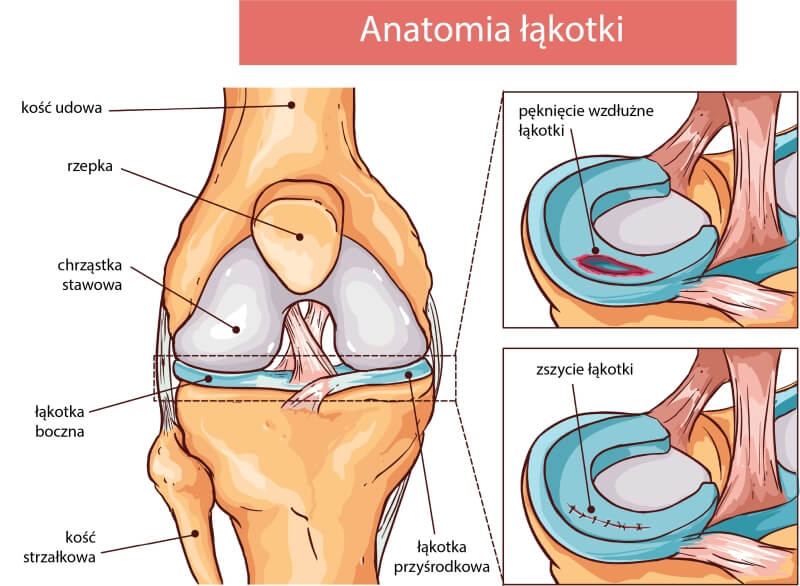Meniscus injuries typically result from significant knee stress, often during physical activity. Forces damaging the meniscal tissue may act in various directions, such as twisting or tearing under compression (e.g., in deep squats). In younger individuals, the meniscus has high strength and elasticity, so injuries often occur due to significant trauma, such as sports activities (e.g., skiing, soccer, squash) or traffic accidents. In older individuals, repeated microtraumas and age-related degenerative changes reduce meniscal durability, causing injuries even during routine activities like deep squats. Degenerative meniscus injuries result from cumulative microtraumas superimposed on joint degeneration, with symptoms such as gradual pain and dysfunction without a specific traumatic event.