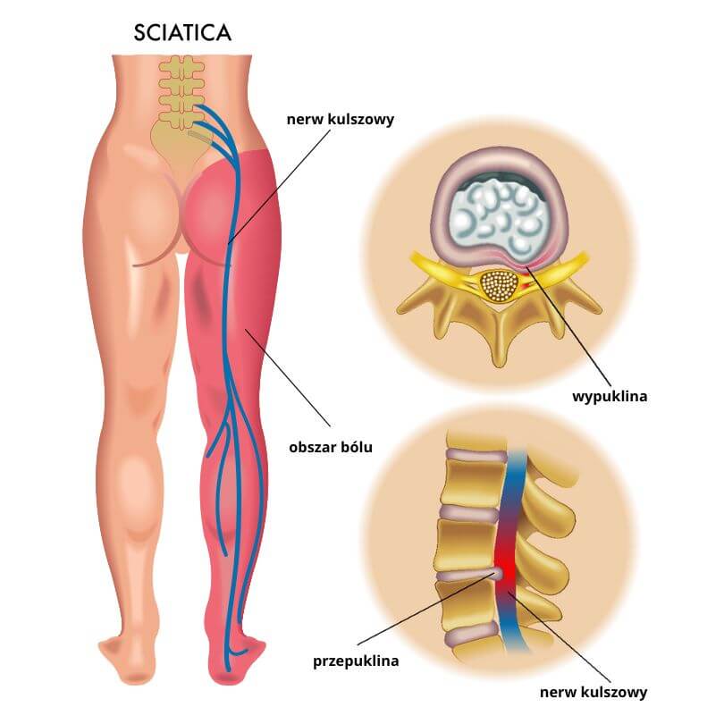 Pharmacotherapy will reduce pain, which will improve the comfort of daily life. Rehabilitation depends on the site and type of symptoms, and there are different rehabilitation schools. It consists of manual therapy. The first line of defense against pain is high muscle tension - patients tense up and try not to do movements that bother them. Usually people with sciatica problems do not have a straight spine, but bend. Over time, this begins to bother them, and the physiotherapist looks for movement patterns for pain relief. This includes kinesiotaping and learning exercises to help avoid recurrence.
