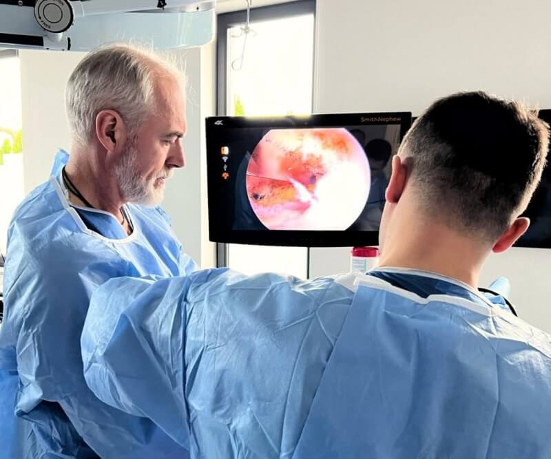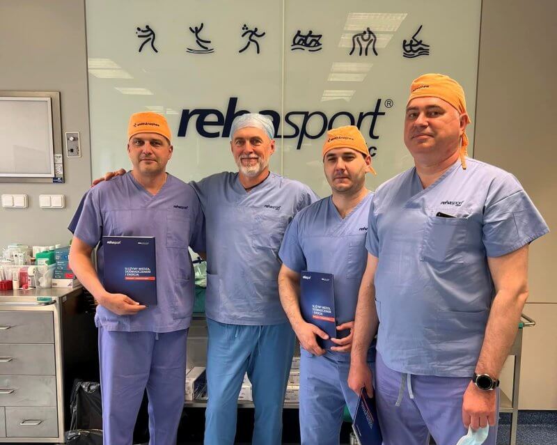 Doktor Petr Oliva, który na co dzień pracuje w Bulovka University Hospital w Pradze, w szpitalu Rehasport w Poznaniu obserwował pracę całego zespołu naszych operatorów, m.in. uczył się od dr hab. Tomasz Piontek procedur takich jak rekonstrukcja ACL, naprawa łąkotki czy artroskopia kolana (2024).