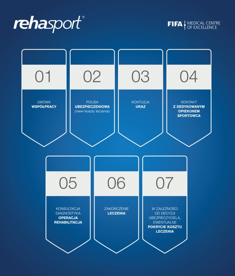 Na rynku jest wiele firm, które w swojej ofercie mają produkty dedykowane organizacjom, zawodnikom i amatorom z różnych dyscyplin sportowych. Z reguły polisa kosztuje od kilkunastu do kilkuset złotych miesięcznie. W przypadku kontuzji nie trzeba się martwić kolejkami w publicznej służbie zdrowia czy koniecznością samodzielnego finansowania w prywatnej placówce. Ubezpieczenie może pokryć koszty konsultacji ortopedycznych, diagnostyki, ewentualnej operacji, jak i rehabilitacji. Rehasport przygotowuje także komplet dokumentów medycznych (zrealizowanych w Rehasport) pozwalający ubiegać się o zwrot kosztów leczenia.